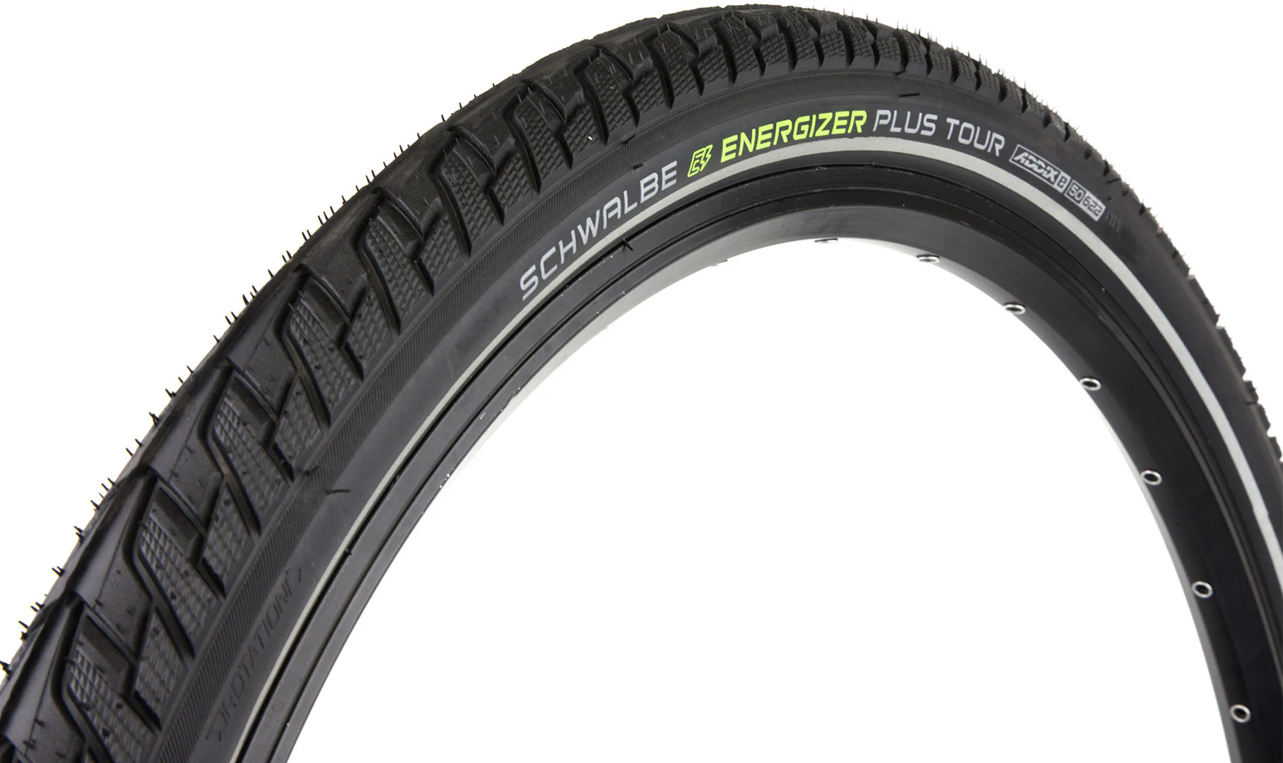 La Schwalbe Energizer Plus Tour, con el compuesto Addix E, es la cubierta E-touring definitiva. Tiene sistema antipinchazos reforzado y aprobado para bicicletas eléctricas ECE-R75, que le permitirá rodar sin problema "mientras dure la batería". La banda de rodadura se ha revisado y esta versión se inspira en la Marathon GT Tour, pudiendo rodar sin problema en carretera o en pistas y caminos.