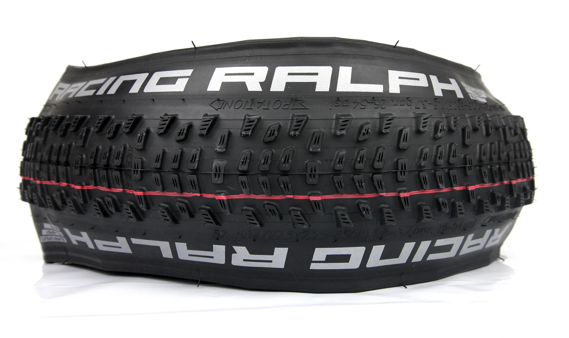 - Racing Ralph Super Ground 29 x 2,25 pulgadas, con ETRTO 57-622, pesa 610 gramos y soporta una carga de 110 kilos. La presión de inflado recomendada está entre 1,80 y 3,70 bar (26 - 54 psi). Para el montaje con cámara, las cámaras de aire compatibles son: 19, 19A, 19AP, 19 + AP, 19F.